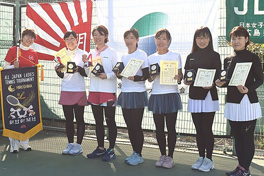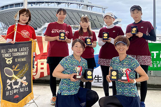 本大会は、多くの女性が生涯スポーツとしてテニスを楽しみ、明るい社会づくりに繋げることを目的に開催されています。全国決勝大会では、各都道府県大会で競った上位3組が都道府県の代表としてチームとなり、団体戦で全国のトップを目指します。